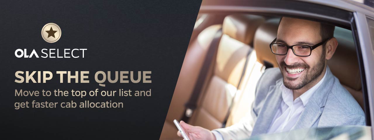 Book Cabs Nearby at Best Price | Hire Taxi Nearby Online at Olacabs.com Ola Cabs offers to book cabs nearby your location for best fares. For best taxi service at lowest fares, say Ola! Drive with Ola. Ola Money. Ola Corporate. Ola Foundation. ... Ola Select A membership program with Ola that lets you ride a Prime Sedan at Mini fares, book cabs without peak pricing and has zero wait time ...